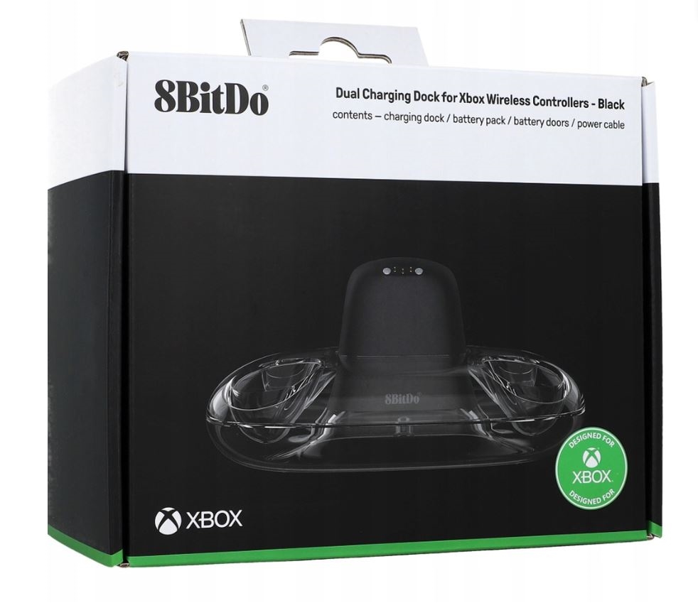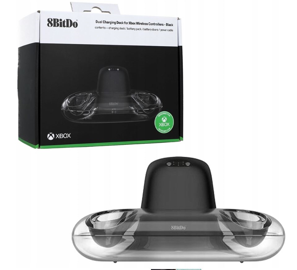 Include 8BitDo Charge Dock, două baterii pentru plăcuțe de 1100mAh, patru capace de baterii (2 pentru Xbox Series X/S și 2 pentru Xbox One) și un adaptor de alimentare. Controlerele nu sunt incluse în acest kit.