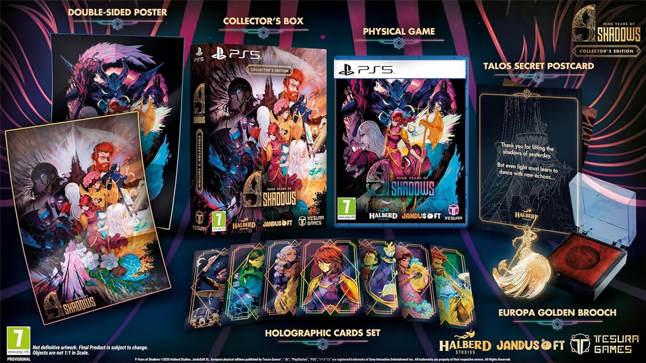 9 Years of Shadows este un joc side-scrolling de tip Metroidvania de la Halberd Studios. Porniți într-o călătorie alături de Europa, o războinică curajoasă hotărâtă să pătrundă în uriașul mecanic Talos și să oprească distrugerea înainte ca lumea să fie cuprinsă de întuneric. Luptați cu creaturi corupte, întâlniți muzicieni carismatici și dezvăluiți adevărul despre blestemul care a privat lumea de toate culorile.
