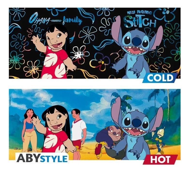 Ia-ți o cană răcoroasă cu un volum de 460 ml, care își schimbă culoarea datorită căldurii, cu o licență din lumea Disney - Lilo și Stitch. Cana Disney - Lilo and Stitch de 460 ml (king size) este fabricată din ceramică și provine din distribuția oficială.