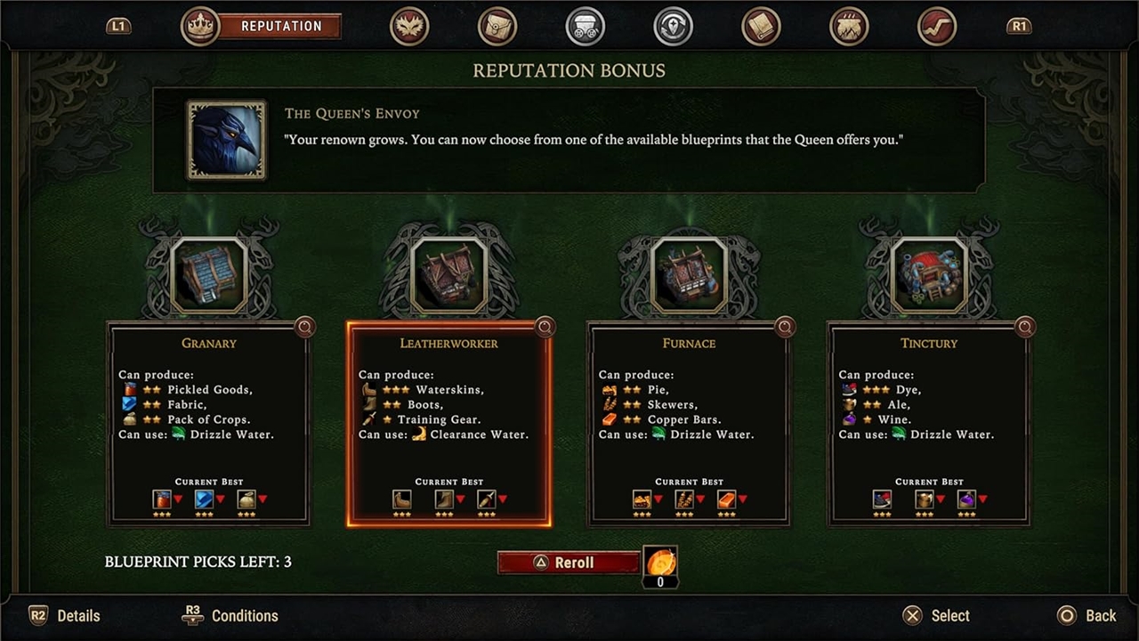 Administrează o populație diversă de săteni: Vulpi, castori și șopârle luptă pentru supraviețuire alături de oameni și harpii. Folosiți-vă de avantajele fiecăruia dintre aceste grupuri în timp ce echilibrați necesitățile lor diferite, de la preferințe de cazare și hrană până la pasiunea pentru anumite tipuri de lux sau moduri de petrecere a timpului liber. Veți produce pelerine impermeabile, veți prepara bere și veți coace prăjituri pentru a întări moralul sătenilor în fața ostilității deznădăjduitoare a pădurii, sau veți prioritiza nevoile unei singure specii pentru a progresa cât mai repede în îndeplinirea misiunii voastre pentru Regina Arsă?