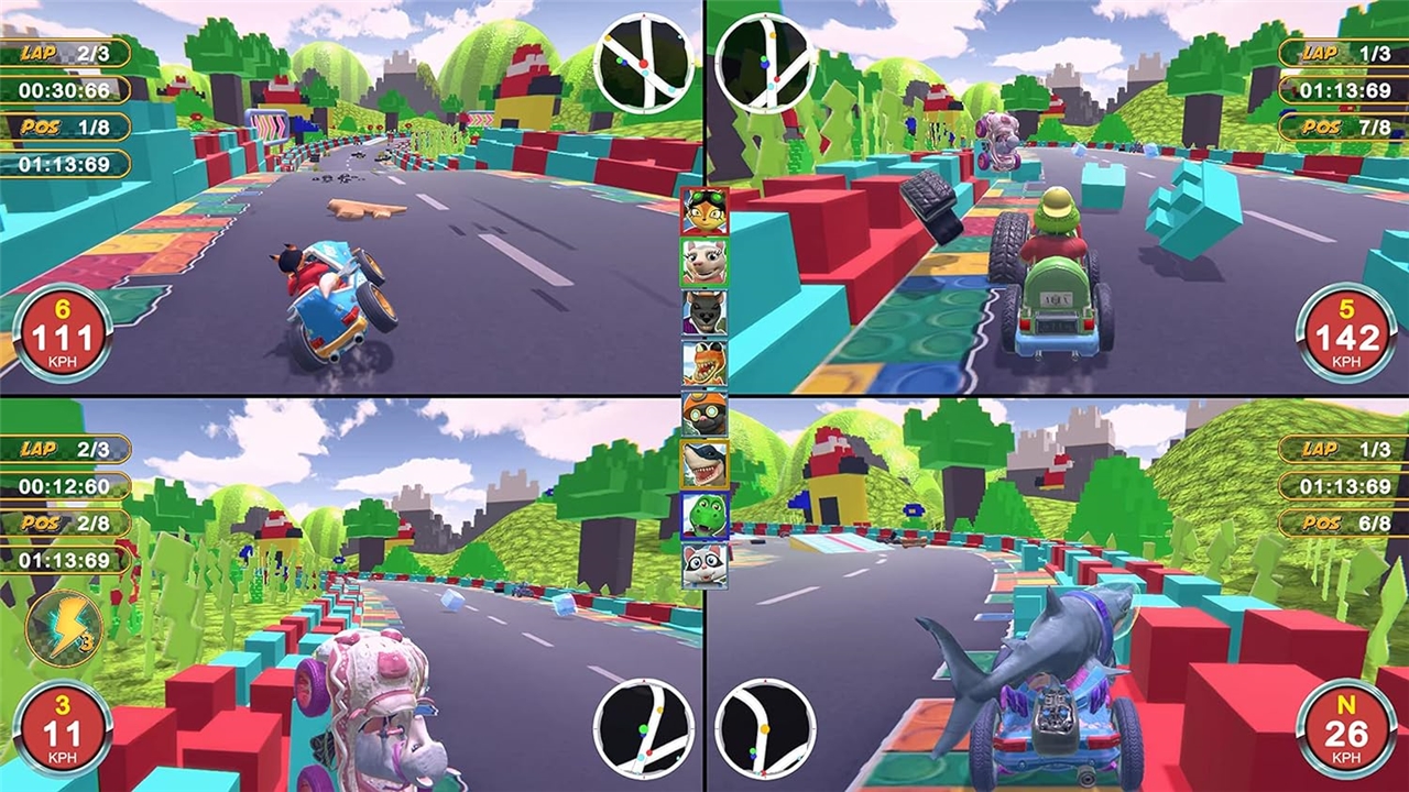 Alege-ți șoferul dintr-unul din cele 16 personaje comice - inclusiv un raton, castor, lup, rechin sau crocodil! Aleargă pe 20 de trasee incitante, pline de viraje ascuțite, obstacole periculoase și surprize neașteptate. Explodează prin obiecte destructibile, sari de pe rampe și evită copacii căzuți, stâncile, gheața și scurgerile de petrol. Pornește la drum, apasă pedala la maxim și bucură-te de curse intense de karting într-o varietate de moduri.