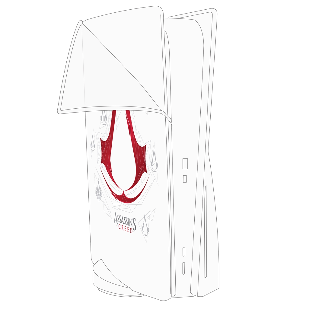Husă din silicon pentru PlayStation 5 cu tema Assassin's Creed.