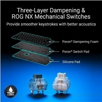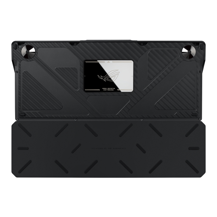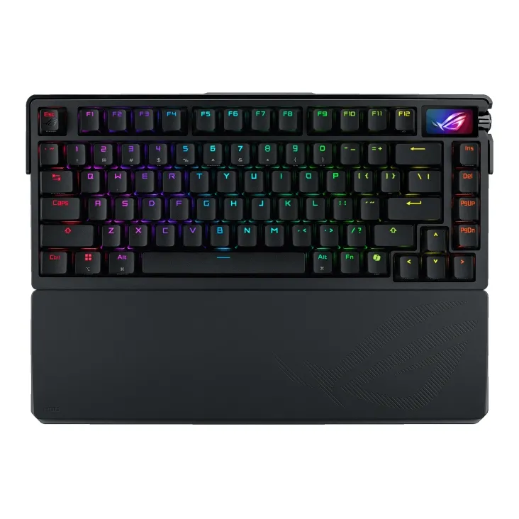 ROG Azoth Extreme este o tastatură de gaming de 75% personalizabilă, cu un șasiu premium din aliaj de aluminiu și un cadru metalic. Se remarcă prin viteza de raportare de 8000 Hz cu ROG Polling Rate Booster și o autonomie a bateriei de peste 1600 de ore în modul wireless ROG SpeedNova 2,4 GHz. Ecranul OLED îmbunătățit și butonul în trei direcții permit monitorizarea sistemului și setări rapide. Placa de poziționare din fibră de carbon asigură un sunet clar la tastare, în timp ce trei straturi de amortizare absorb vibrațiile. Suportul reglabil pentru etanșare cu comutator paddle oferă două opțiuni de tastare.