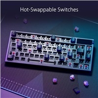 Tastatura de gaming ROG Azoth personalizată, cu factor de formă de 75 de taste, cu garnitură, spumă de amortizare în trei straturi și capac superior metalic, extrem de personalizabilă, cu întrerupătoare mecanice ROG NX prelubrifiate și înlocuibile din mers, stabilizatoare de tastatură ROG, capace de taste PBT cu dublă lovitură și kit de lubrifiere, mod de conectare triplă cu tehnologie SpeedNova de 2,4 GHz, afișaj OLED, buton de control cu trei direcții, trei unghiuri de înclinare și suport pentru Mac.