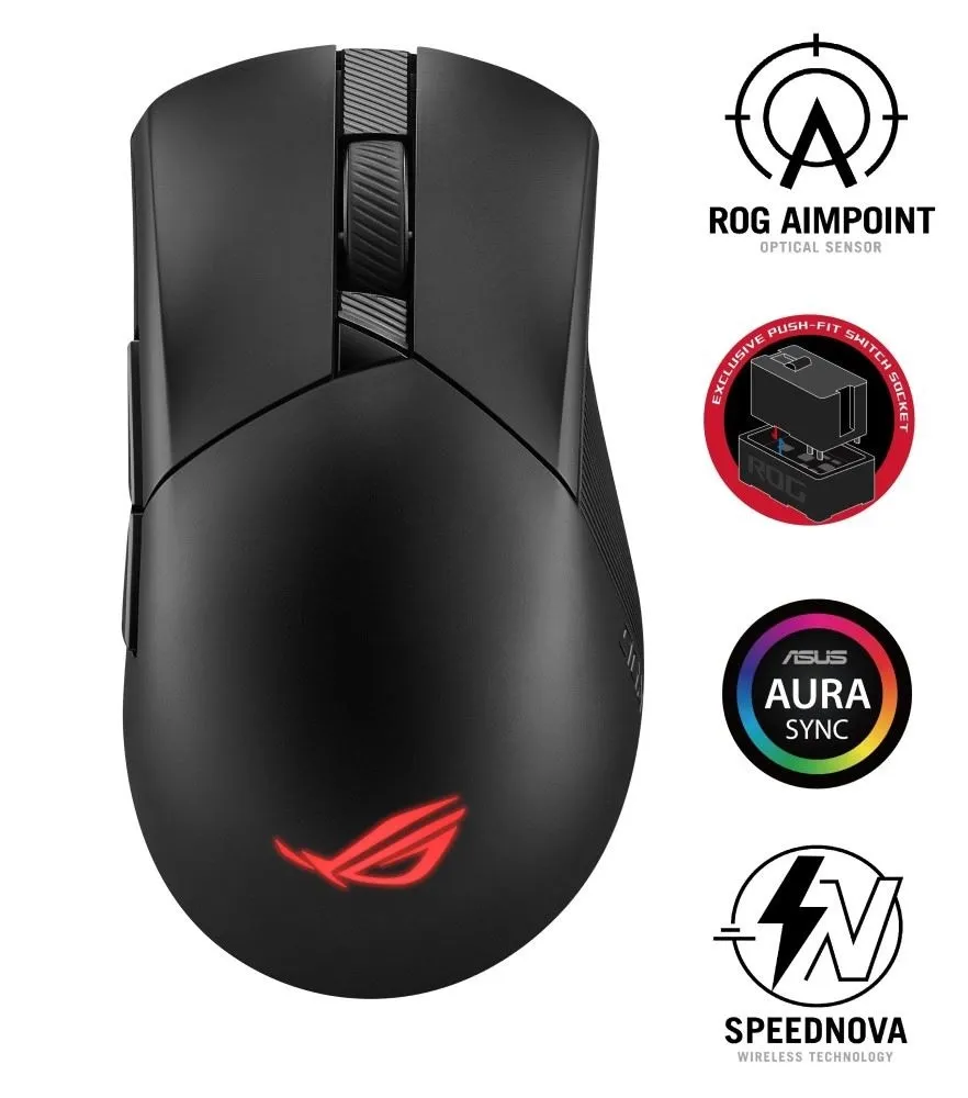 ROG Gladius III Wireless AimPoint este un mouse de gaming wireless RGB ușor, de 79 de grame, care dispune de senzorul optic ROG AimPoint cu o rezoluție de 36.000 dpi, conectivitate în trei moduri, tehnologie wireless ROG SpeedNova, comutatoare de mouse interschimbabile, microcomutatoare ROG, un mecanism de butoane rotative pentru o latență a clicului de 0 ms, design ergonomic, ROG Paracord, picioare de mouse 100% PTFE, șase butoane programabile și o bandă de prindere a mouse-ului.
