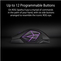 Până la 12 buto ane programabile - Cele 12 butoane programabile de pe ROG Spatha X îți permit să execuți nenumărate comenzi în palma ta, cu șase butoane laterale dispuse pentru a semăna cu ochiul iconic al ROG. Amplasarea fiecărui buton a fost atent analizată pentru a le păstra la îndemână și toate au fost concepute pentru a oferi o senzație tactilă de clic pentru un control intuitiv și receptiv.