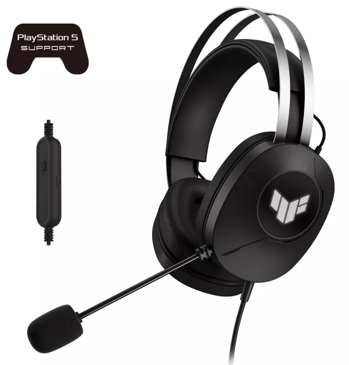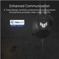 Set de căști de gaming cu fir cu drivere de 40 mm ASUS Essence, sunet surround virtual 7.1, microfon certificat TeamSpeak, design ușor de 297 de grame, perne rezistente și iluminare a logo-ului simbolic TUF