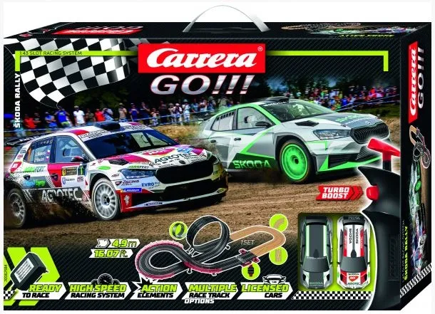Pistă auto Carrera GO - Škoda Rally, cu o lungime de 4,9 m și mașinuțe realiste Škoda FABIA RS 2, oferă distracție plină de adrenalină! Pista poate fi reconfigurată oricând conform imaginației tale, pentru a crea trasee noi și incitante. Carrera GO!!! este ideală pentru copii și adulți care iubesc viteza și creativitatea!