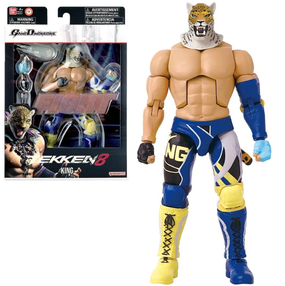 Fiecare figurină din această serie vine cu accesorii amuzante. King are, în plus, câteva mâini interschimbabile, un accesoriu energetic alb și un suport pentru semnul „FIGHT”.