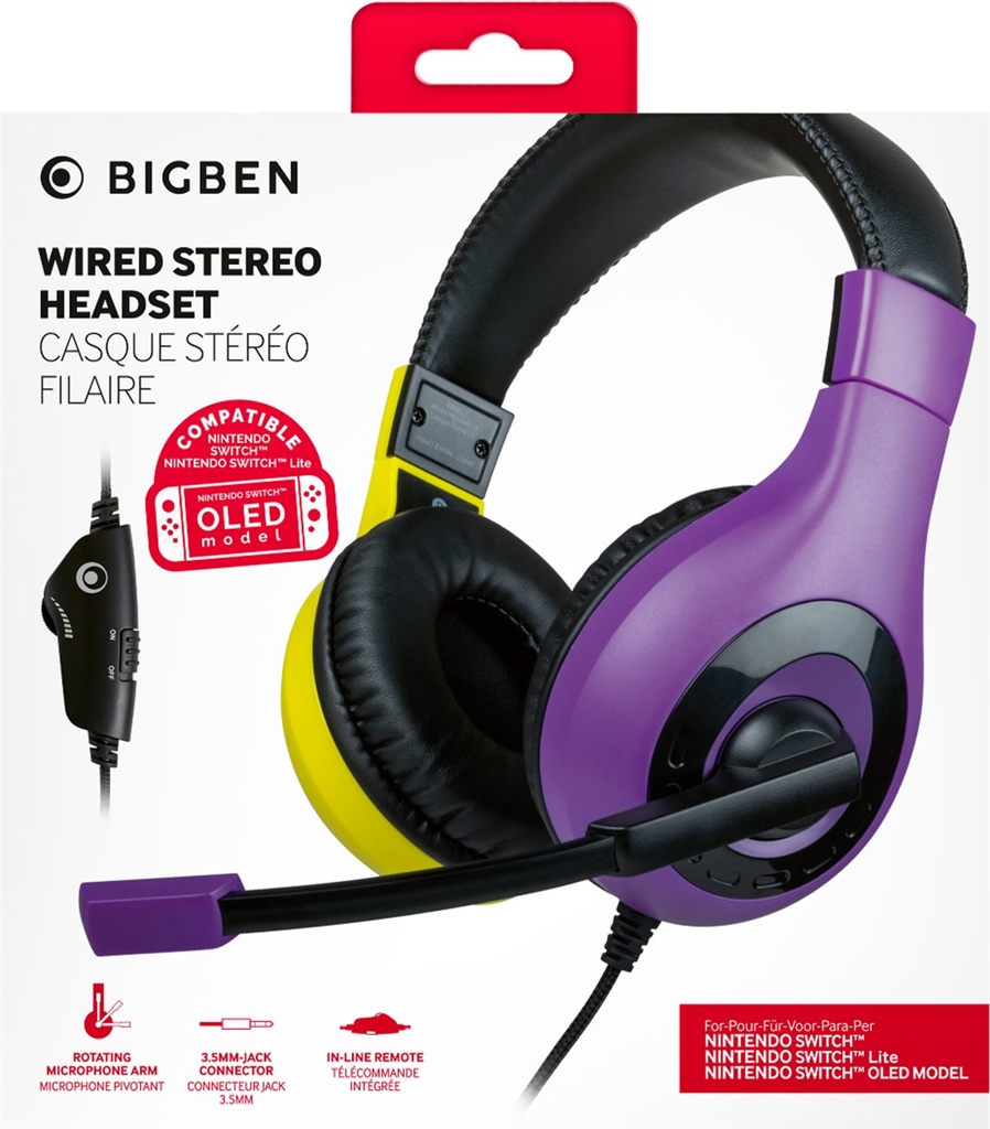 BigBen Interactive Stereo Gaming Headset V1 - Purple + Yellow (Switch) /PS5