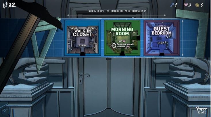 Progresul tău este influențat de camerele pe care le alegi să le explorezi și de instrumentele pe care le găsești în ele. Obiectele din joc pot fi folosite în multe moduri creative pentru a pătrunde mai adânc în casă, permițându-ți să adopți strategii unice pentru a face față provocărilor pe care le aduce fiecare zi. Dar mergi cu prudență – casa se resetează în fiecare dimineață, ștergând totul în afară de îmbunătățirile permanente ale planului conacului tău. Adică, dacă ai fost destul de deștept încât să descoperi unele!