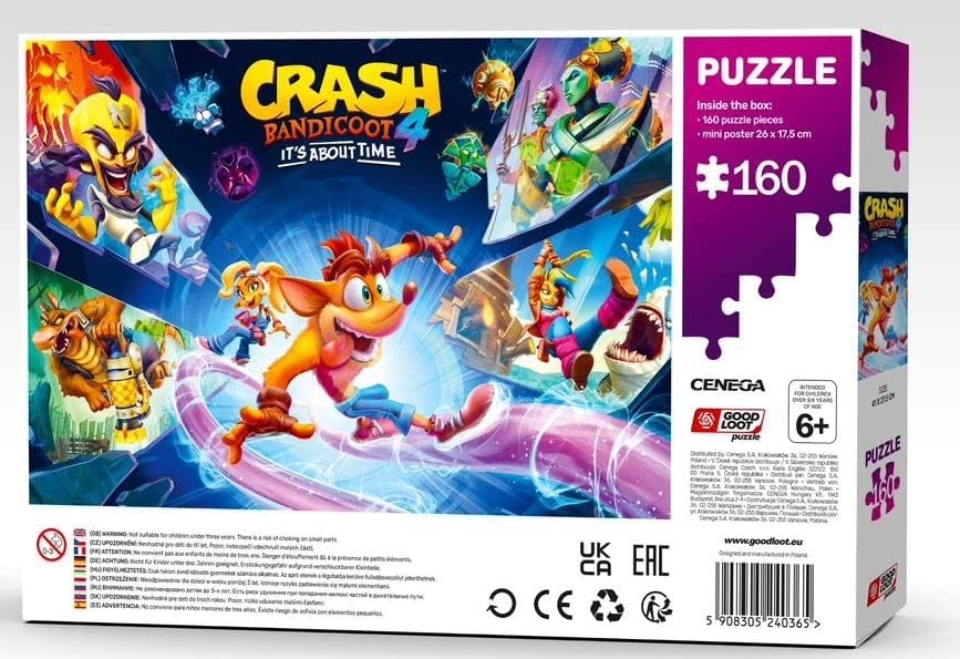Puzzle-ul și plierea acestuia promovează gândirea logică și, în plus, ajută la scurtarea momentelor libere. Este o activitate care chiar și după ani de zile nu se învechește și încă își găsește entuziaști în rândul copiilor. În pachet se află 160 de piese, care au nevoie doar de o mică doză de răbdare pentru a fi asamblate. Puzzle-ul oferit motivează la asamblare cu o imagine atrăgătoare rezultată. Pentru producerea puzzle-ului a fost ales un material de calitate, și anume hârtia. Puzzle-ul Crash Bandicoot va fi pe placul fiecărui iubitor de piese mici.
