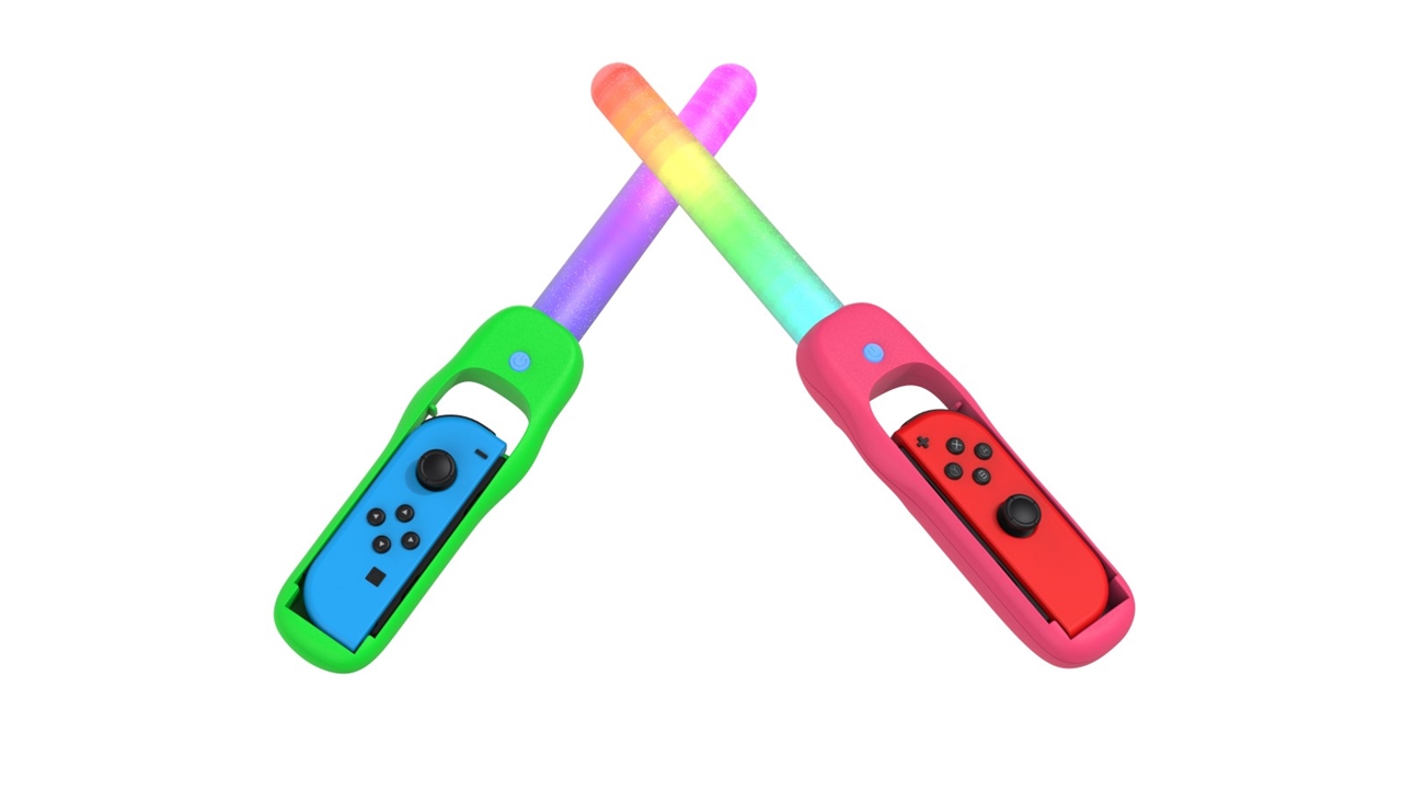 Kitul Dance 'N' Play include 2 batoane luminoase LED sensibile la sunet, cu mânere roz și verzi și curele pentru încheietura mâinii. Bețele luminoase LED sensibile la sunet, cu efect de iluminare de fundal multicoloră de tip curcubeu, vor funcționa, vor pulsa, vor străluci și vor dansa pe orice sunet. Fie că este vorba de muzică sau de sunete de jocuri, kitul Dance 'N' Play îți va lumina camera.