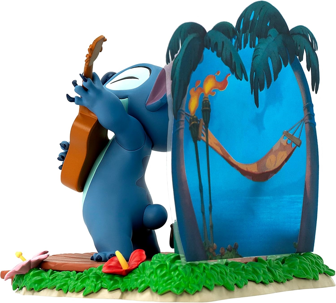 Acestă figurină Stitch de la studioul ABYstyle, care ține o chitară și cântă lângă discurile sale vinil preferate, este ideală pentru fanii filmului Lilo și Stitch de la Disney. Urmăriți cum cântă la chitară pe o scenă de lemn și reamintiți-vă farmecul prieteniei, familiei și ohana.