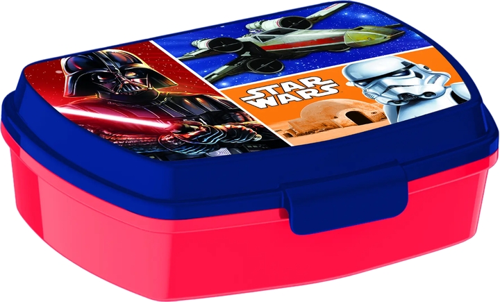 Cutie practică de plastic pentru gustări, cu motiv Star Wars. Cutia este fabricată din material netoxic de înaltă calitate și este suficient de spațioasă. Datorită închiderii practice, nu se va vărsa. Cutia nu este potrivită pentru cuptorul cu microunde sau mașina de spălat vase.