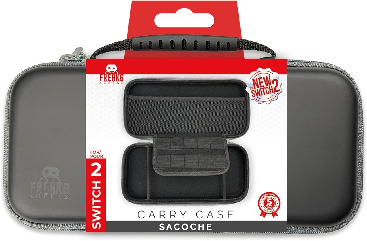 Această husă de transport neagră de la Freaks & Geeks va fi apreciată de toți jucătorii care doresc să aibă, în timpul călătoriilor, siguranța că consola lor de jocuri Nintendo Switch 2 va fi, împreună cu accesoriile, în deplină siguranță.