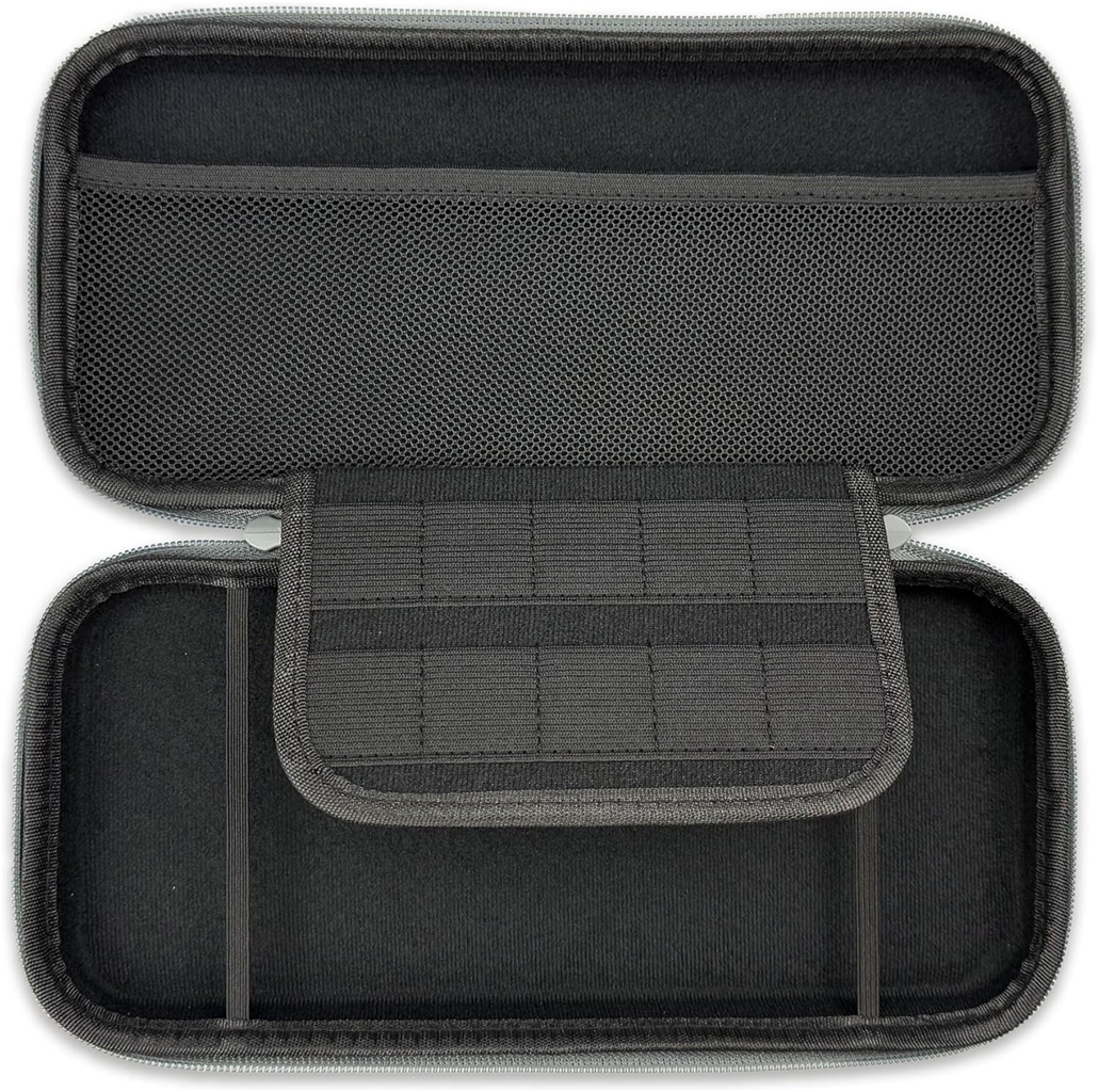 Husa este rezistentă nu doar la șocuri și la presiune, dar, datorită utilizării unui polimer elastomeric modern EVA, oferă de asemenea o rezistență de bază la apă. Separatorul din mijlocul husei protejează ecranul consolei împotriva zgârieturilor, iar în buzunarele de pe partea sa superioară puteți depozita în plus până la zece carduri cu jocurile dumneavoastră preferate. În buzunarul din plasă există apoi suficient spațiu pentru accesorii mărunte.