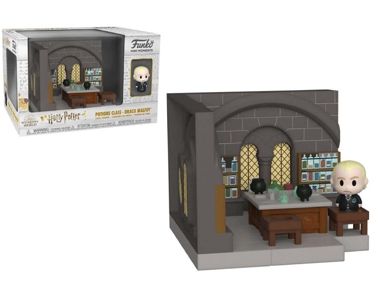 O scenă de la o oră de poțiuni din Harry Potter sub forma unei diorame Funko POP cu Draco Malfoy. Funko POP sunt figurine de colecție bazate pe personaje din cele mai faimoase filme, seriale TV, jocuri video și alte teme populare, care sunt apreciate de fanii din întreaga lume datorită tratamentului umoristic al acestora.
