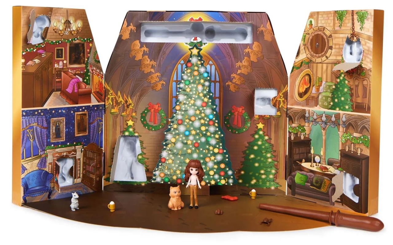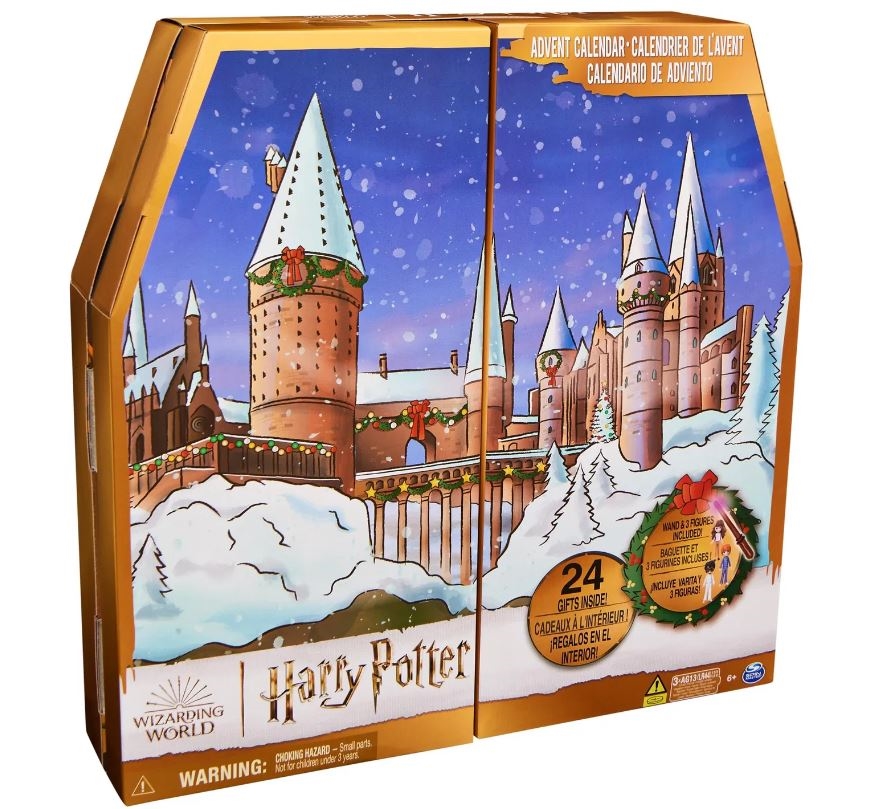 Acest calendar advent Harry Potter va încânta toți fanii lumii vrăjitoriei și magiei! Cu 24 de surprize care fac mai plăcut timpul de dinaintea Crăciunului, copiii pot descoperi în fiecare zi obiecte magice noi. În calendar vor găsi bagheta lui Harry Potter cu lumină UV, figurinele lui Harry, Ron și Hermione, pulovere, eșarfe, pălărie, pelerină invizibilă și multe alte obiecte magice.