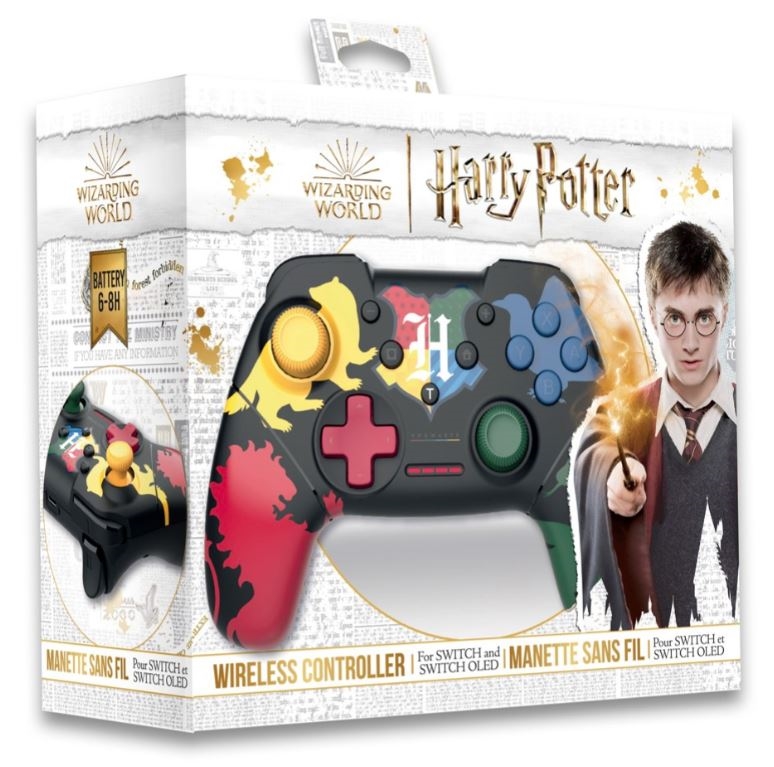 Un controler wireless în stilul temei legendare a lui Harry Potter Hogwarts, compatibil cu Nintendo Switch și Nintendo Switch OLED. Controlerul poate funcționa fără fir timp de până la 8 ore, moment în care puteți continua să jucați în timp ce îl încărcați prin intermediul cablului USB-C de 1 m inclus. Controlerul dispune, de asemenea, de o funcție de vibrație și de 4 indicatoare LED.