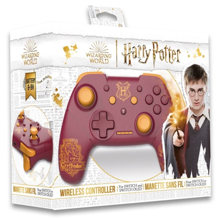 Un controler wireless în stilul legendarului Harry Potter, cu o temă Gryffindor, compatibil cu Nintendo Switch și Nintendo Switch OLED. Controlerul poate funcționa fără fir timp de până la 8 ore, moment în care poți continua să te joci în timp ce te încarci prin intermediul cablului USB-C de 1 m inclus. Controlerul dispune, de asemenea, de o funcție de vibrație și de 4 indicatoare LED.