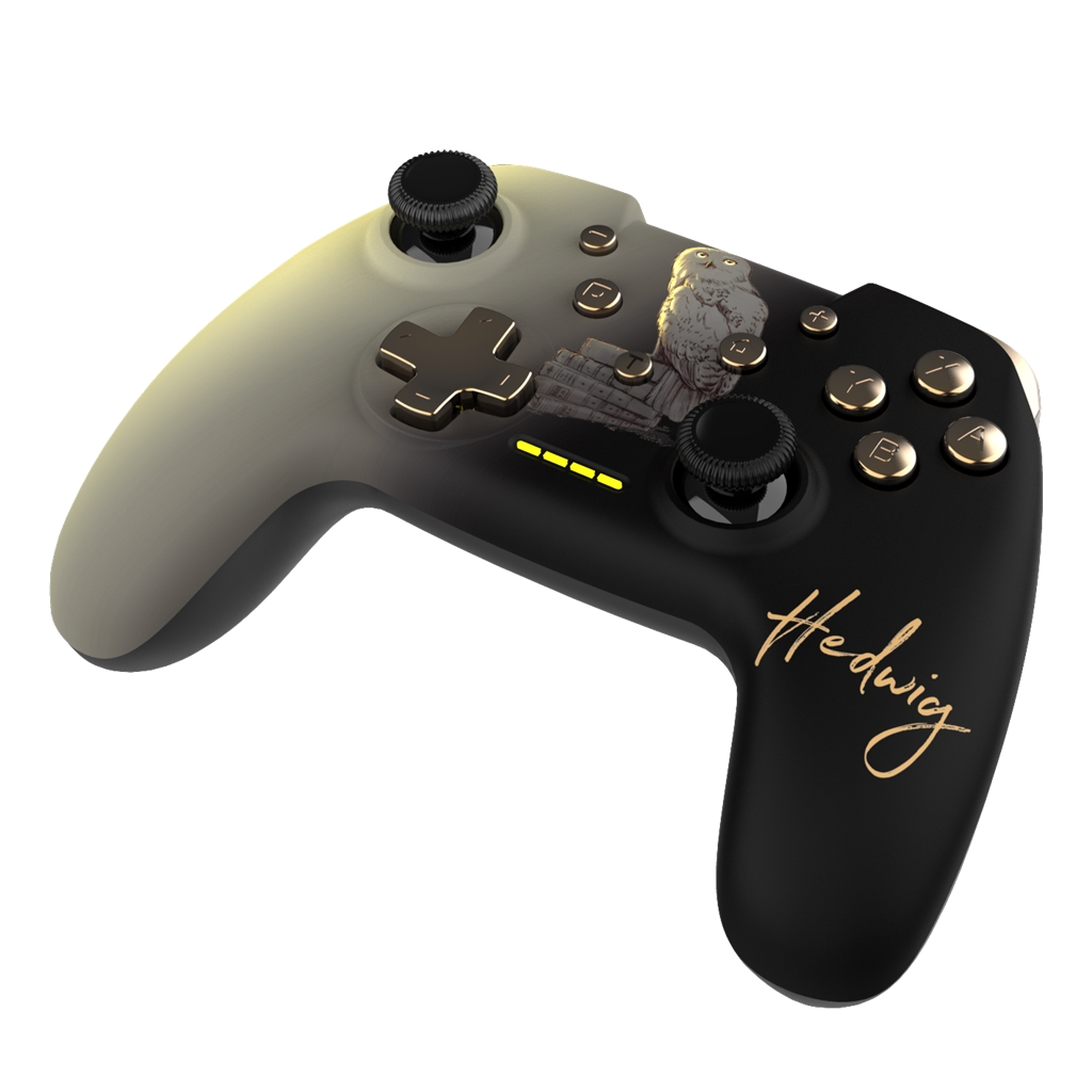 Controler de joc Nintendo Switch Harry Potter - Hedwig (Collector's Edition - Negru) Acest controler de joc fără fir cu licență oficială, care o înfățișează pe bufnița de zăpadă Hedwig din lumea populară a vrăjitorilor din Harry Potter, este conceput pentru toți posesorii de console Nintendo Switch și Nintendo Switch - Model OLED. Pe lângă caracteristicile standard, cum ar fi două butoane superioare, două declanșatoare, o pereche de motoare de vibrație și suport pentru controlul mișcării, controlerul oferă, de asemenea, patru indicatori LED pentru a monitoriza starea de încărcare și progresul bateriei reîncărcabile încorporate sau un buton Turbo pentru a facilita apăsarea repetată a butoanelor și declanșatoarelor - Controler de joc wireless pentru consolele Nintendo Switch și Switch - Model OLED - Design ergonomic pentru o prindere confortabilă chiar și în timpul sesiunilor lungi de joc.