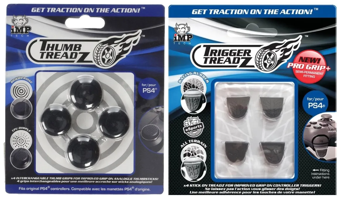 Îmbunătățiri pentru controlere de joc de la marca Thumb Treadz pentru PlayStation 4! Intrați în acțiune cu aceste îmbunătățiri uimitoare pentru butoanele analogice și bucurați-vă de un joc confortabil!