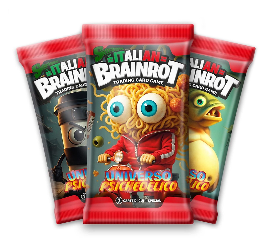 Un pachet individual destinat colecționarilor și iubitorilor de cărți TCG, creat de compania Skifidol exclusiv după trendul Italian Brainrot.