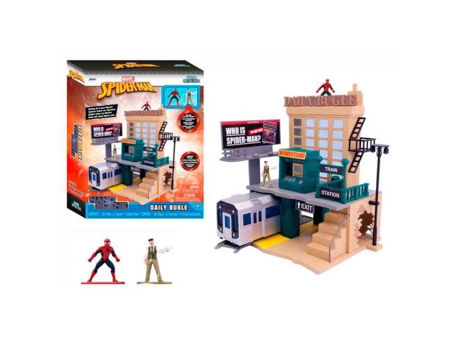 Dioramă cu accesorii, dimensiune aprox. 20 cm. Compatibilă cu toate figurinele Spider-Man din linia Nano Metalfigs.