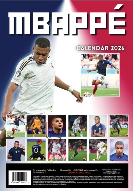 Trăiți anul 2026 alături de una dintre cele mai mari vedete ale fotbalului vremurilor noastre: Kylian Mbappé. Un calendar de perete perfect pentru orice fan, plin cu fotografii puternice și inspiratoare ale lui Mbappé în acțiune.