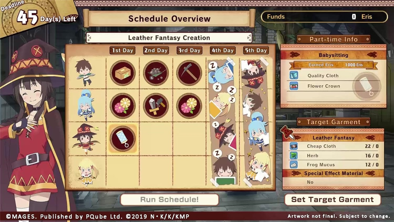 Urmăriți-i pe Kazuma și pe ceilalți în timp ce descoperă o misterioasă "lespede neagră" care îi blestemă cu dorințe care intră în conflict cu personalitatea lor. Gașca trebuie acum să găsească și să aducă ingredientele pe placă pentru a crea o ținută care să le îndeplinească noile dorințe, rupându-și astfel blestemul. Sunteți pregătiți să înfruntați întunericul?