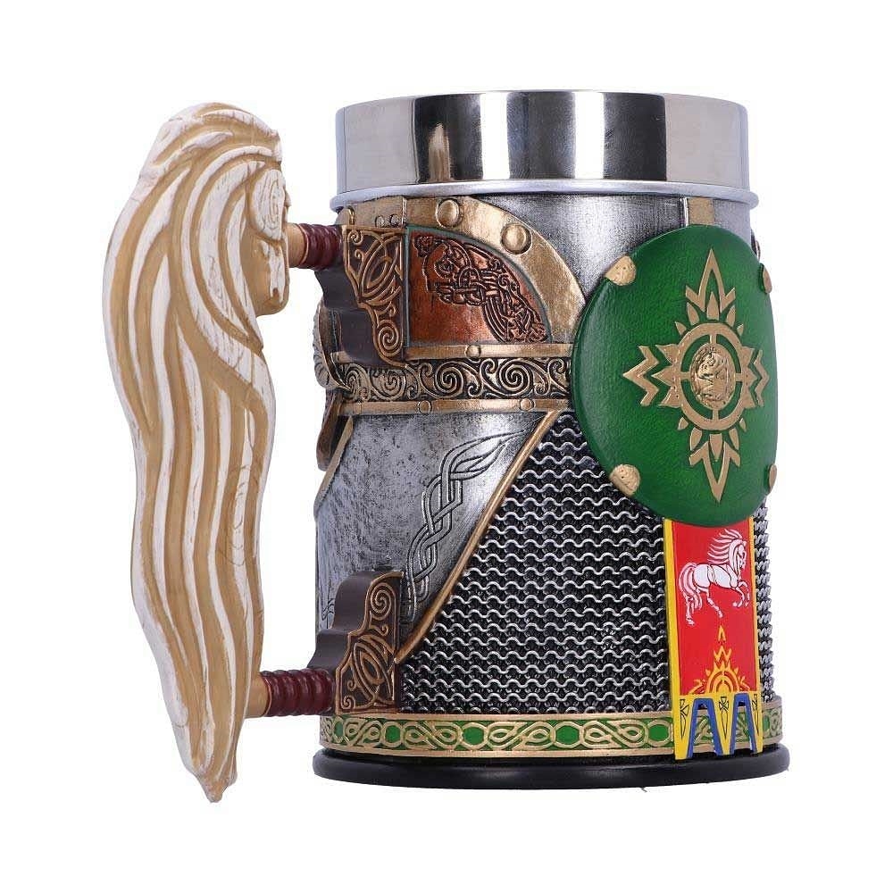 Krásný korbel v podobě zbroje rohanských jezdců pro milovníky Pána prstenů a fantastické Středozemě! Ucho korbelu má tvar koně - symbolu Jízdmarky. Jedinečný dárek pro fanoušky a sběratele! Nerezová vnitřní část je vyjímatelná, což umožňuje snadnou údržbu. Korbel není vhodný do myčky nádobí ani mikrovlnné trouby!