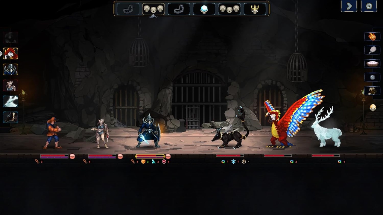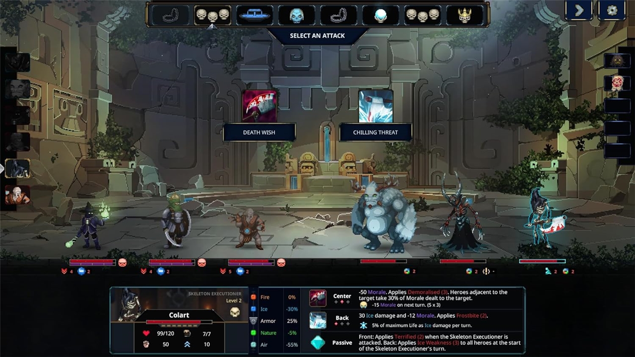 Apoi vei putea urmări cum acești eroi mor! Este un dungeon crawler inversat: eroii se vor mișca prin dungeonul tău și vor activa capcanele plasate de tine. Când grupul de aventurieri întâlnește grupul de monștri pe care i-ai plasat în dungeonul tău, va avea loc o luptă pe ture!