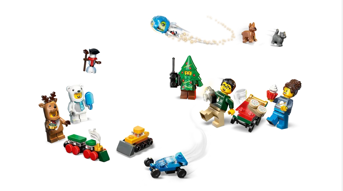 Calendarul este plin de minifigurine și mini-modele de sărbătoare – veți găsi personaje îmbrăcate în urs polar, ren și brad de Crăciun, dar și Moș Crăciun cu doamna Claus și multe alte accesorii care extind posibilitățile de joacă. După deschiderea ambalajului apare o placă de joc cu tema unei petreceri de Crăciun, unde copiii își pot juca propriile povești de iarnă.