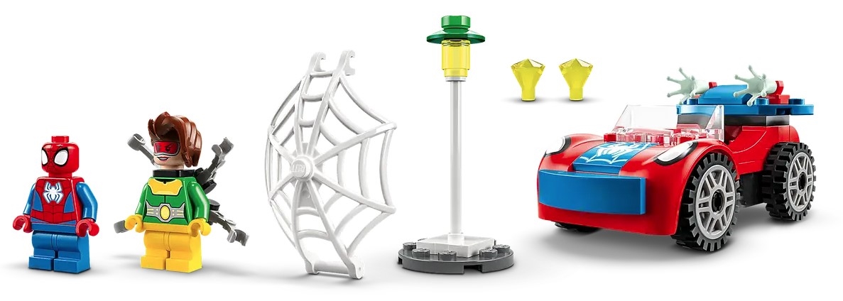 Un furt de diamant declanșează acțiunea și duce la aventuri nesfârșite pline de imaginație. Setul de construcție conține 2 minifigurine – Spidey și Doc Ock – precum și mașina lui Spidey cu 2 elemente pânză care luminează în întuneric. Blocul starter inspiră micii constructori să construiască singuri mașina lui Spidey.