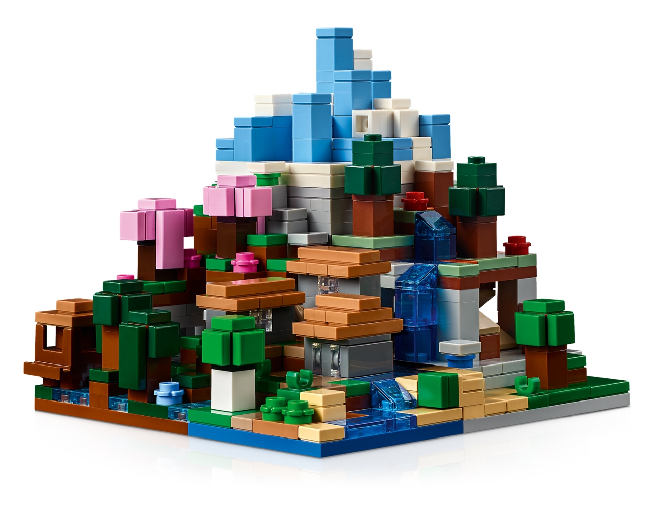 Acest set recreează legendarul banc de lucru din popularul joc video. Sunt incluse 5 mini-modele cu 12 biomi Minecraft, inclusiv o taiga cu o peșteră de stalactite, o câmpie cu un sat, vârfuri de gheață cu un iglu, o livadă de cireși cu un puț de mină abandonat și Deep Dark cu o peșteră supraîngropată. Există 8 microfiguri: Steve, Alex, Skeleton, Witch, Creeper™, Villager, Cow și Pig. Mini-modelele și microfigurile pot fi detașate de modelul principal pentru a personaliza și afișa kitul într-o varietate de moduri. Pe partea din față a acestui model inspirat din Minecraft pot fi lipite autocolante cu fraze celebre din joc.