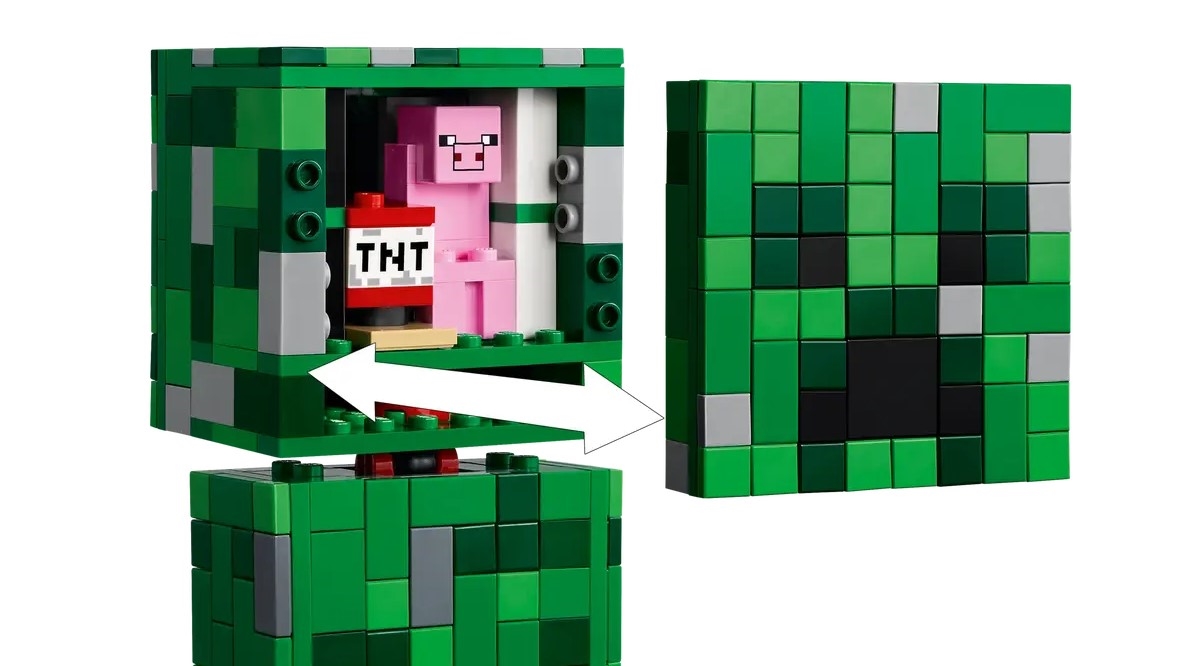 Această replică asamblabilă a Creeper-ului din universul jocului Minecraft măsoară peste 21 cm în înălțime. Are 4 picioare mobile și un cap care se mișcă dintr-o parte în alta și se înclină în sus și în jos. Partea din față a capului figurinei LEGO Minecraft Creeper poate fi detașată și dezvăluie un spațiu interior care conține un Creeper miniatural și bucăți de TNT. Pentru distracție digitală și mai mare, constructorii pot mări și roti modelele în 3D și pot urmări progresul folosind aplicația distractivă și intuitivă LEGO Builder. Setul conține 665 de piese.