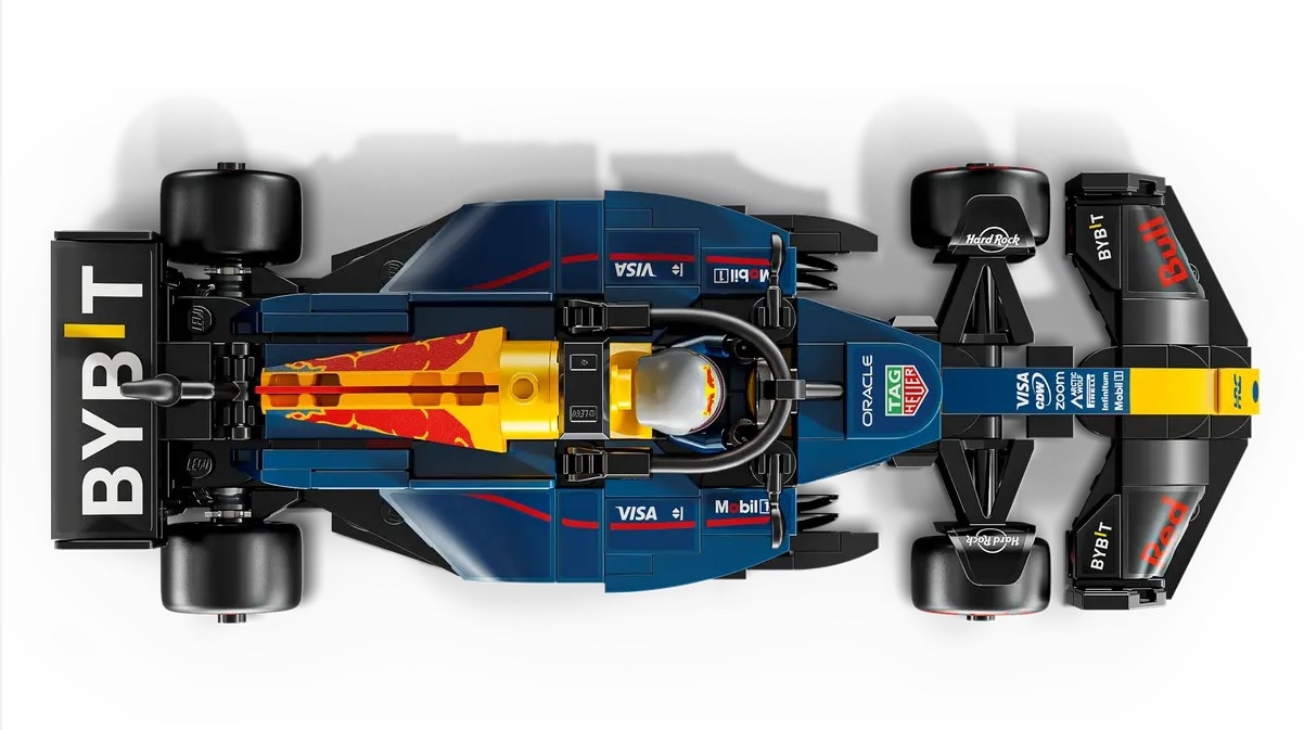 Minifigurină F1® – Acest set de construcție include o minifigurină a pilotului F1 în echipamentul Red Bull cu o cască cu aripi, care poate fi așezată în cockpitul mașinii de curse F1