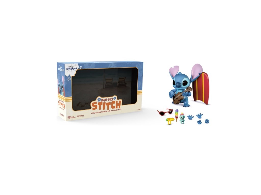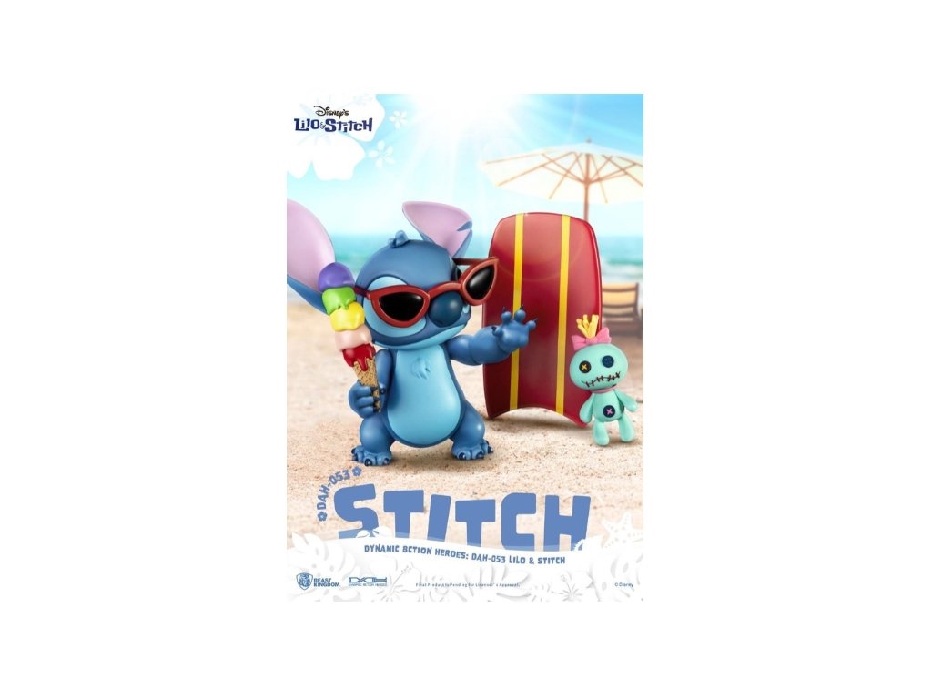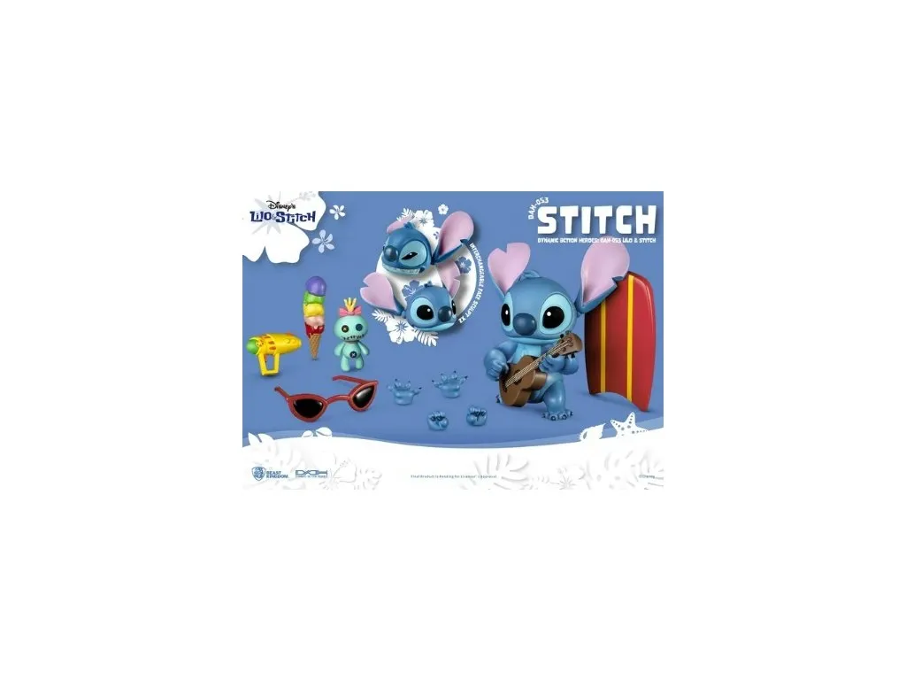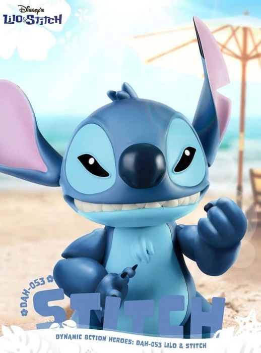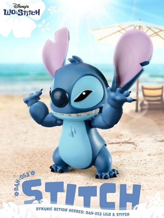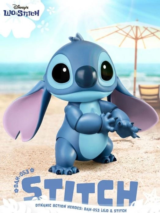 Stitch, eroul neastâmpărat din "Lilo & Stitch" (cunoscut și ca Experiment 626) de la Disney, este aici cu douăsprezece articulații mobile, fețe interschimbabile, mâini interschimbabile și o mulțime de accesorii legate de Stitch. Aceste caracteristici le permit fanilor să se joace cu Stitch și să-l decoreze așa cum doresc, fie că poartă ochelarii de soare drăguți, mănâncă înghețată sau cântă la ukulele și cântă. Comportamentul său adorabil și lipsit de sens îl face să fie greu de pus jos. Fanii care îl iubesc pe Stitch nu vor dori să îl rateze pe acesta! Pune-ți corpul în mișcare cu Stitch și bucură-te de vibrațiile hawaiiene. Figurina are o înălțime de 18 cm.