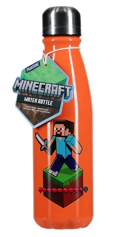 Cu această sticlă de apă din Minecraft vei rămâne hidratat în următoarea ta aventură. Sticla de apă din aluminiu reutilizabilă, cu un volum de 600 ml, este echipată cu un capac cu șurub.