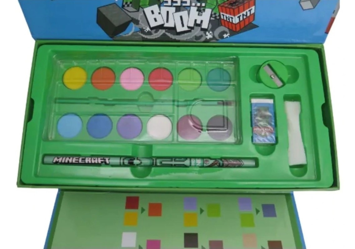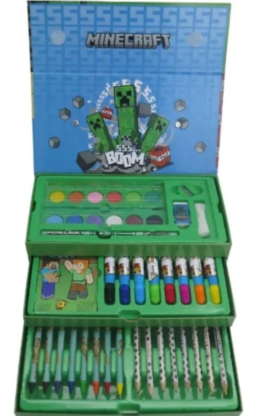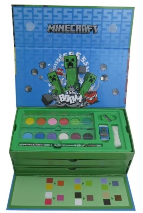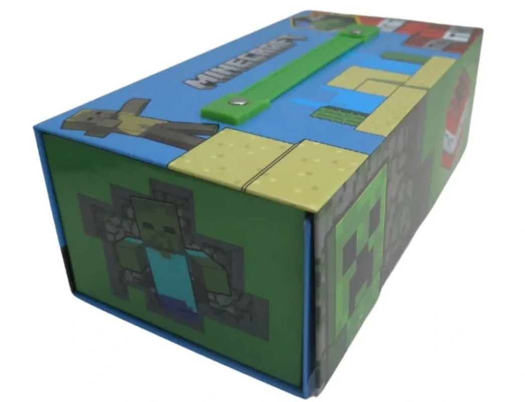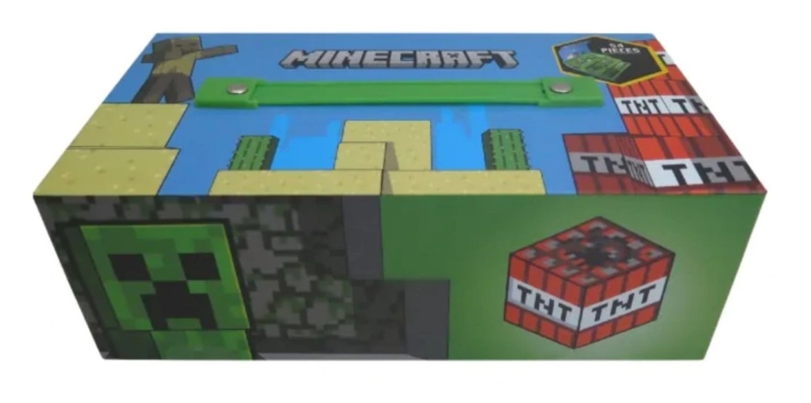 Valiză creativă cu grafica Creeper-ului exploziv și a bombei TNT din jocul video Minecraft.