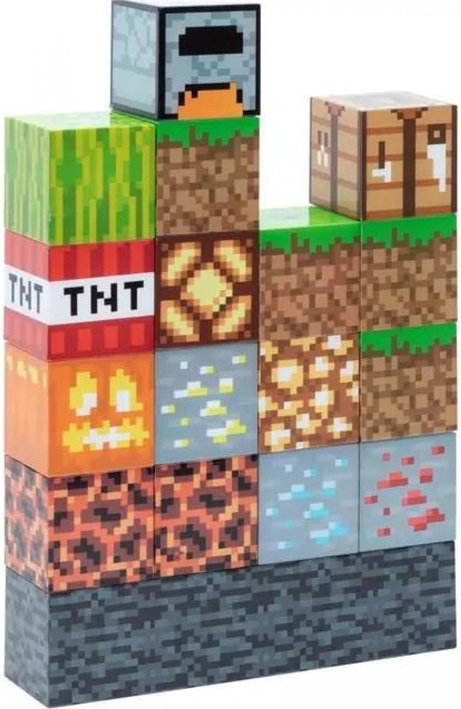 Construiți-vă propria lumină! Lampa pentru toți jucătorii și fanii jocului video popular cu blocuri, Minecraft, include blocuri de iarbă, TNT, diamante, redstone, aur, etc.