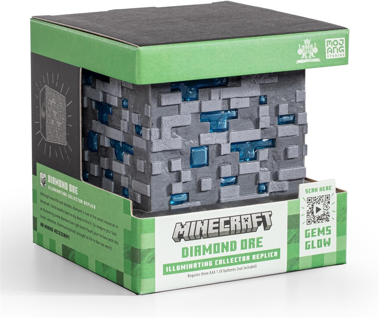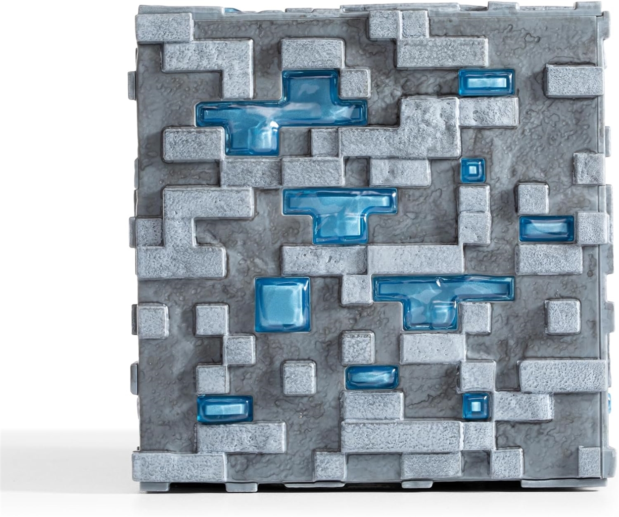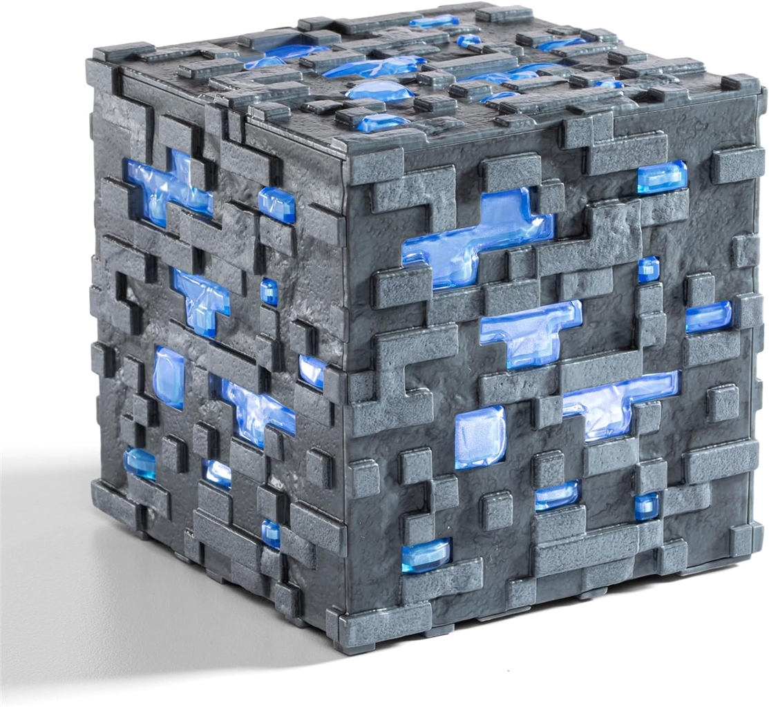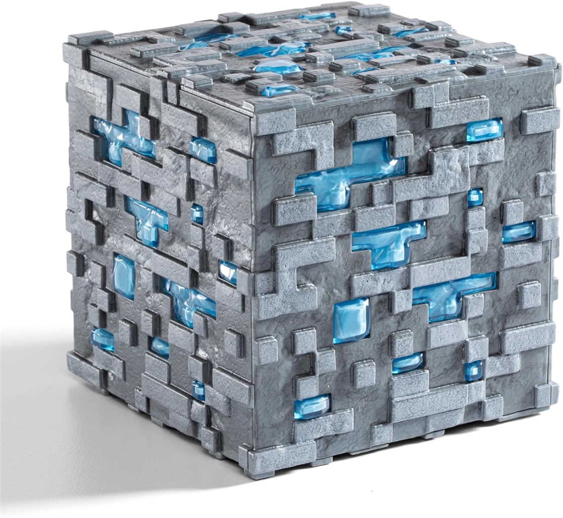 O replică de colecție a cubului de diamant pe care îl știi din Minecraft. Detaliat. Cubul strălucește, pentru a obține efectul de strălucire aveți nevoie de baterii AAA, care nu sunt incluse în pachet. Dimensiuni: 13,70cm X 13,70cm X 13,70cm X 13,70cm. Licență oficială.