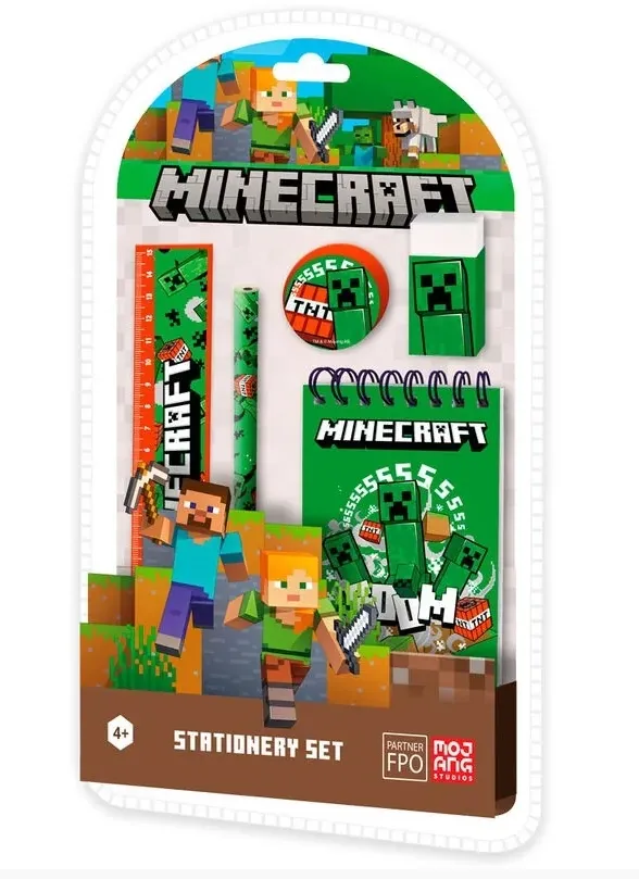 Un set școlar cu tematică de bombă TNT și personajul Creeper din popularul joc video Minecraft va bucura fiecare fan al acestui joc – chiar și în timpul obligațiilor școlare. Materialele școlare stilate cu grafică originală vor face învățarea de zi cu zi mai plăcută și vor aduce o mică parte din lumea jocurilor și în bancă.
