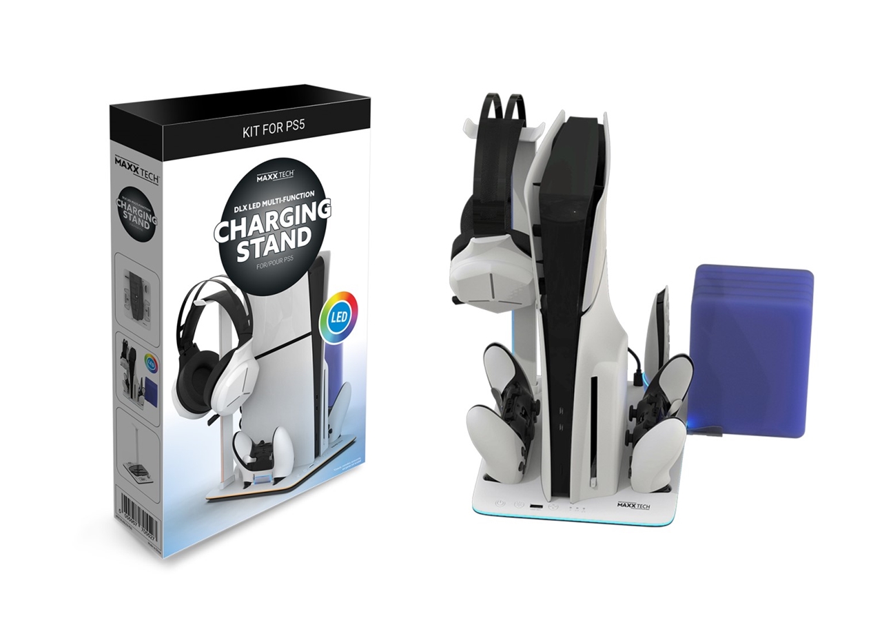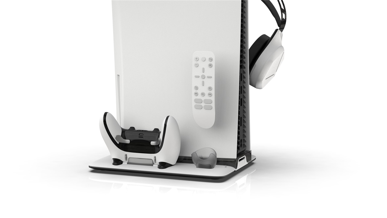 Optimizați-vă experiențele de joc cu această stație de încărcare și suport pentru PS5, care vă oferă mai mult confort și o organizare mai bună a spațiului de joc.
