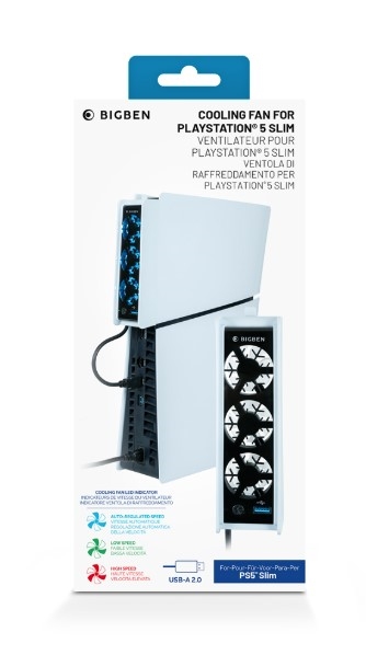 Îmbunătățiți evacuarea excesului de căldură din consola dumneavoastră PlayStation 5 Slim cu sistemul de răcire suplimentar de la Bigben Interactive. Trei ventilatoare iluminate albastru asigură o răcire eficientă atât pentru versiunea cu disc, cât și pentru cea digitală a PS5 Slim și, datorită designului asortat, se integrează perfect cu consola.