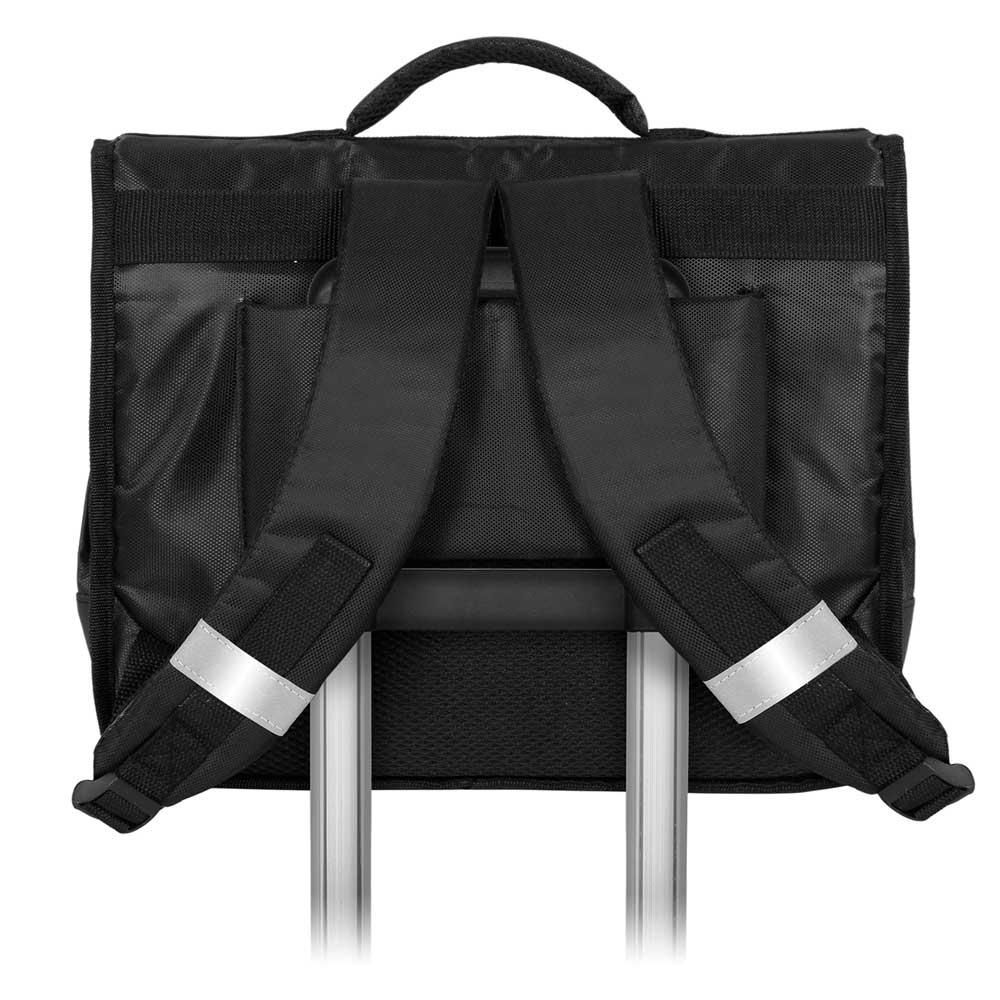 Rucsac școlar tip servietă cu închidere cu cataramă și reflectorizante de siguranță. Buzunarul principal are un separator și căptușeală interioară cu buzunar cu fermoar.