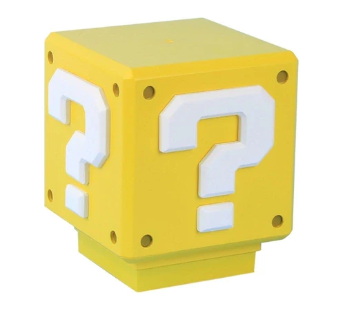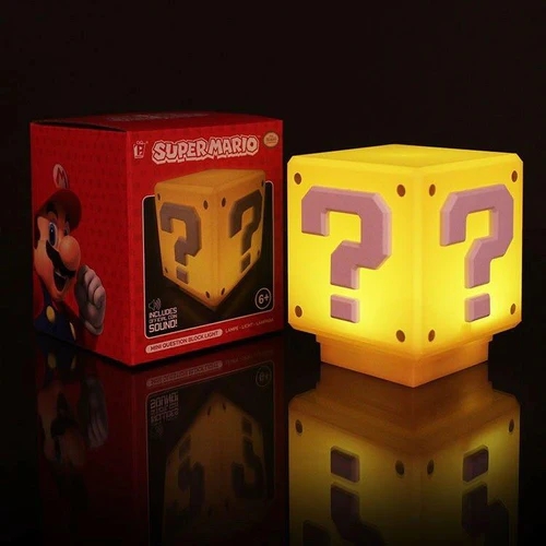 Lampa portabilă sub forma unui bloc cu un semn de întrebare din clasicul joc Super Mario este accesoriul ideal pentru orice loc de petrecere. Lampa poate fi aprinsă sau stinsă prin simpla așezare a mâinii pe suprafața superioară și redă emblematica melodie Mario atunci când este aprinsă.