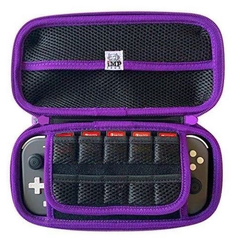 Capacul cu spațiu de depozitare pentru jocuri protejează și ecranul Switch-ului