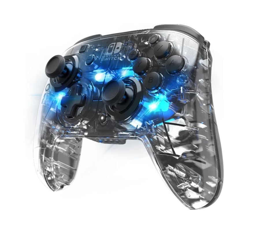 PDP vine cu un controler elegant cu fir pentru Nintendo Switch, care dispune de un design modern cu iluminare LED prismatică, o durată de redare lungă de până la 20 de ore, o mufă pentru căști (mufă de 3,5 mm) și control al volumului direct pe D-pad.